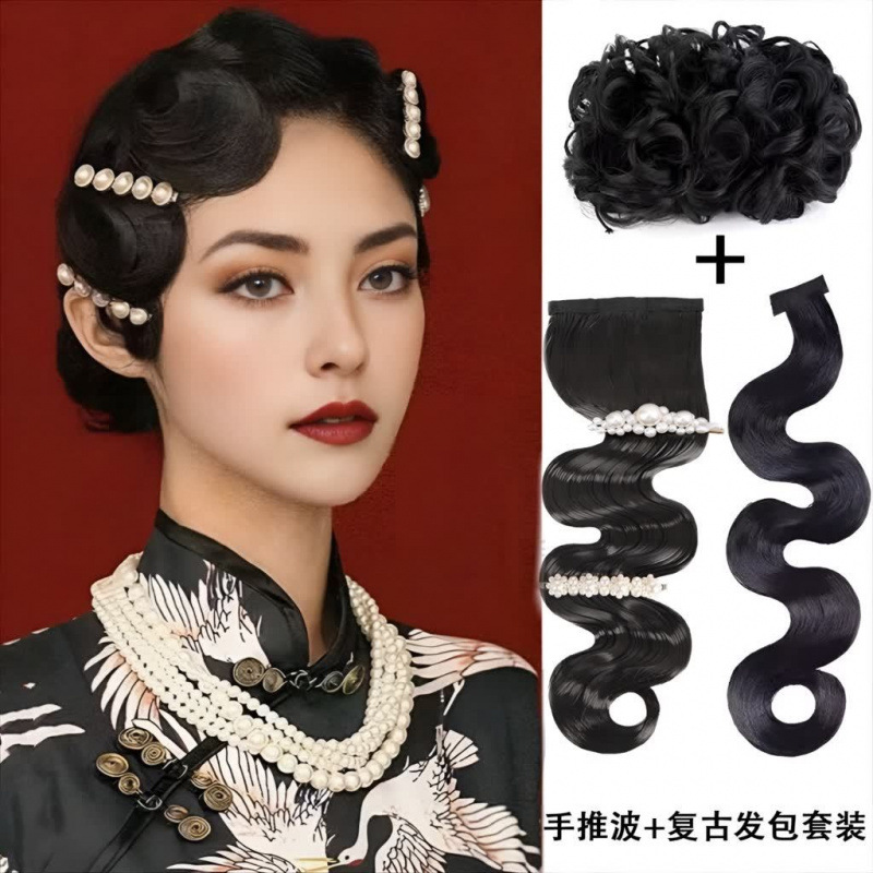 レトロ中華民国ウィッグ軍阀妻アクセサリー古い上海軍阀チャイナドレスレディハンドプッシュ波形前髪