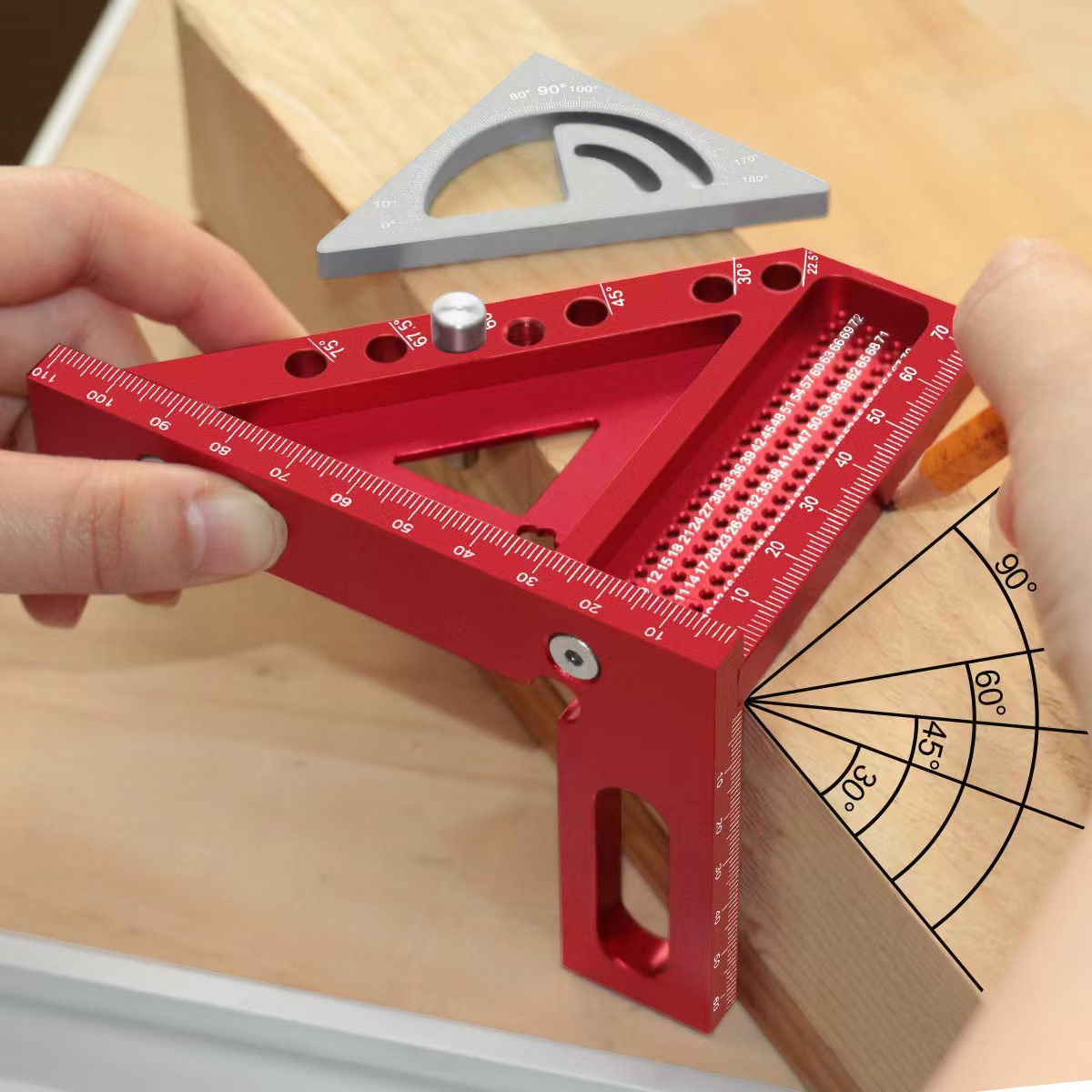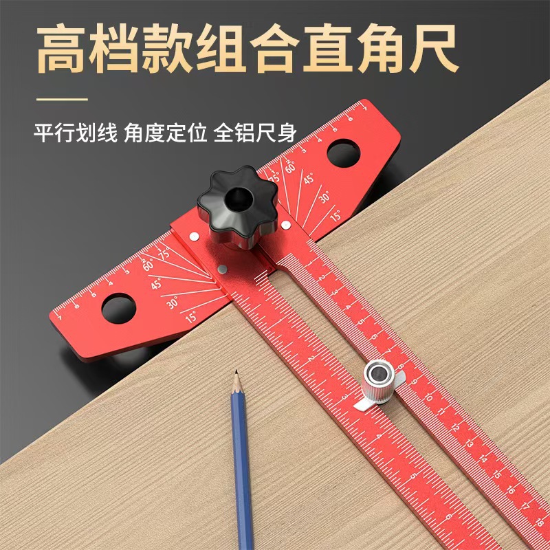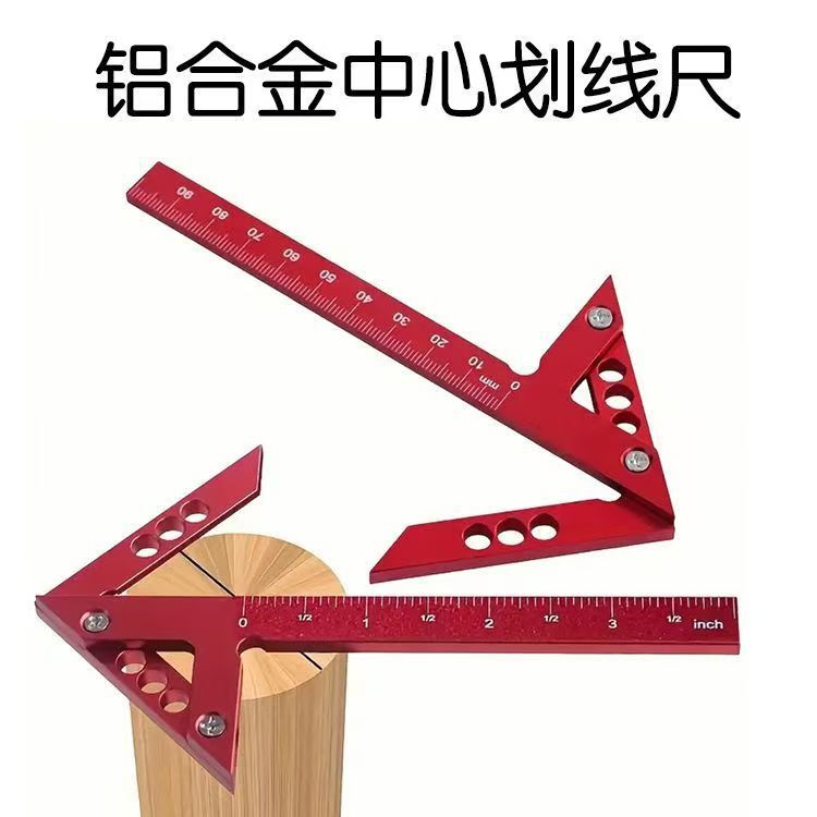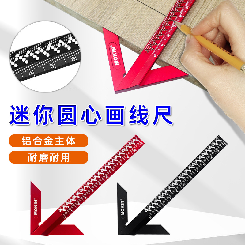 アルミ合金角度定規、丸心定規、45度三角矢印直角位置決め定規、90度角度定規、木工スクライビング定規