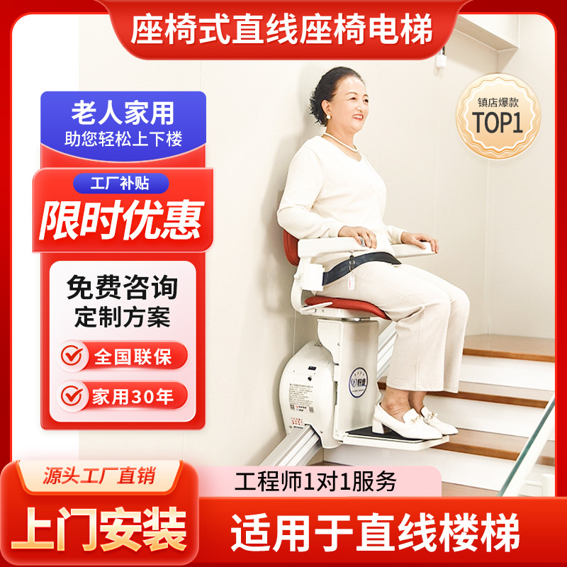 高齢者用階段昇降装置 2階建て直線シートエレベーター 家庭用エレベーター 安全・耐久性・折りたたみ式
