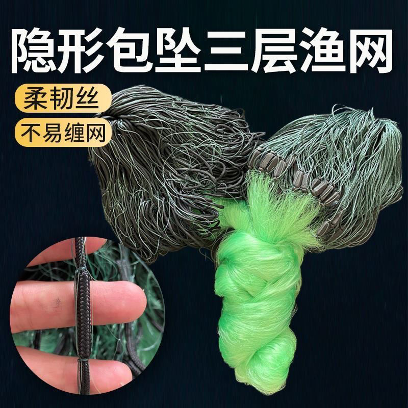 【送料無料】輸入シルク加重ロープペンダントバッグペンダント三層漁網沈下網グリーンシルク粘着網吊り網フナ網鯉網