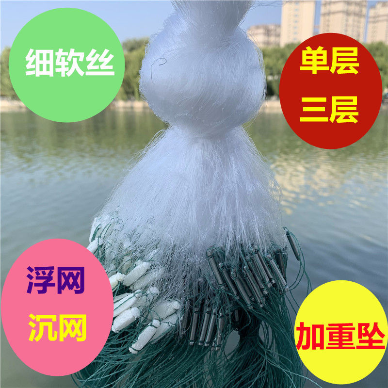 【送料無料】粘着網、網漁網、三層沈下網、単層浮き網、吊り下げ魚網、白縞のフナ・鯉漁網