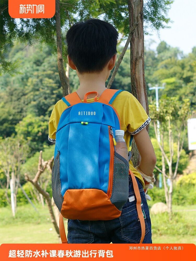 熱麦子供リュックサック男の子は旅行に出かけます。