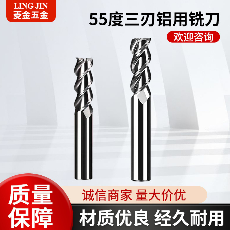 55度三刃アルミフライスツール、両刃、タングステン鋼超硬ソリッドCNCツール、タングステン鋼エンドミル