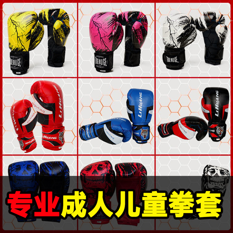 大人と子供向けのプロボクシンググローブ、男性と女性向けのサンダーファイトトレーニング実用ボクシンググローブ、プロの通気性のあるファイティングムエタイ
