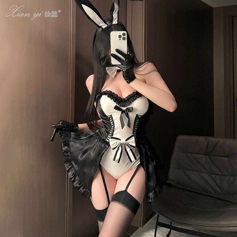 仙懿セクシーランジェリー ハロウィン純情バニーガール制服 誘惑セクシー貧乳ノーブラセット qqny599