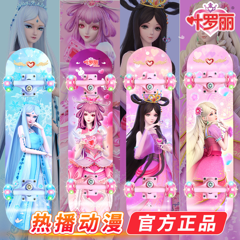 Ye Luoli 子供用スクーター 6歳から12歳の女の子向け、初心者向け四輪スケートボード、フラッシュダブルウィッププロフェッショナルボード