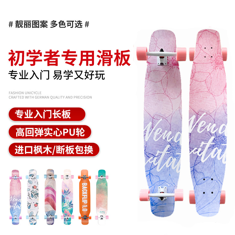 女の子、初心者、男の子、女の子、中学生向けのプロのエントリーレベルのロングボードスケートボード、ダブルロッカーダンスボード、大人用四輪スケートボード