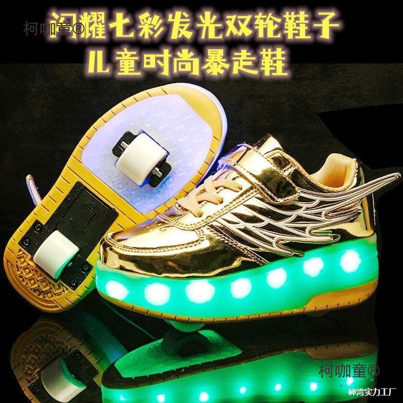 轮鞋子可收缩儿童款网红发光暴走鞋男童女童充电四轮溜冰鞋麦太保