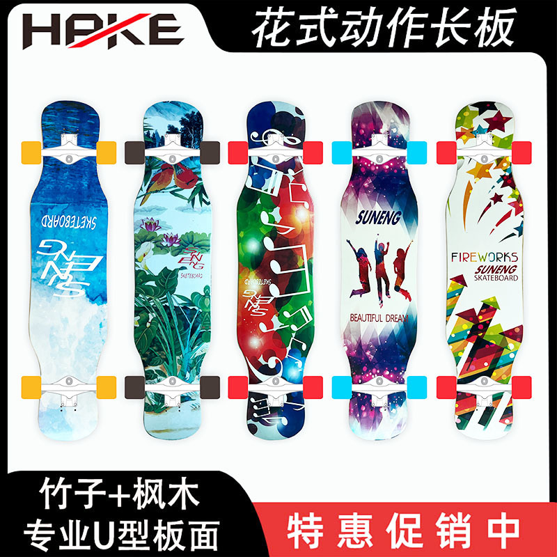 竹メープルロングボードスケートボードデッキプロダブルカーブ初心者大人男女学生ティーンエイジャー韓国版スノーボード
