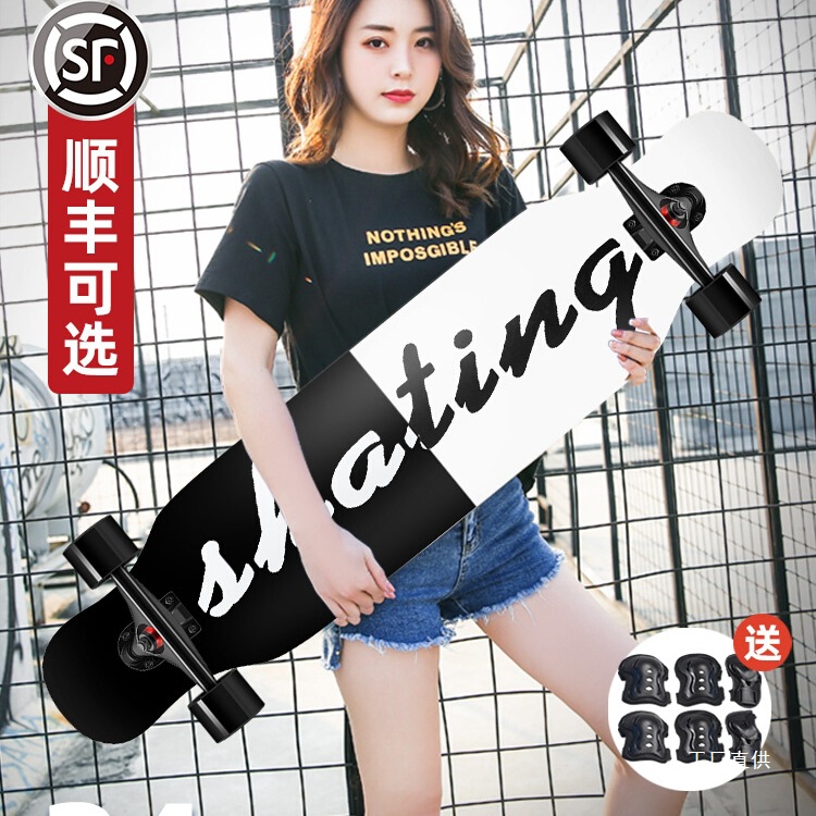 110cm ロングボードスケートボード大人ティーンエイジャー初心者男の子と女の子ダンスボードストリート大人の四輪スケートボード