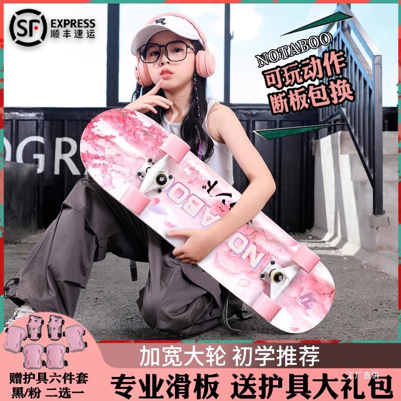NOTABOOプロスケートボード初心者女の子3-6-12歳子供子供四輪スクーター10-15歳男
