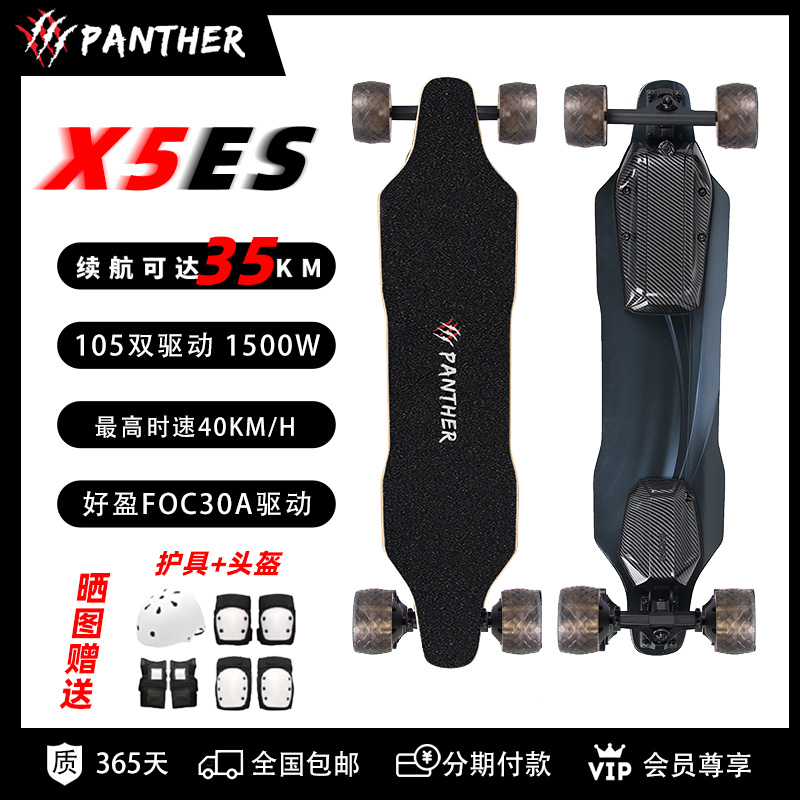 Black Panther X5ES 電動スケートボード ロングボード リモコン 四輪ロード 大人用 デュアルドライブ 高速 高耐久 ダウンヒル