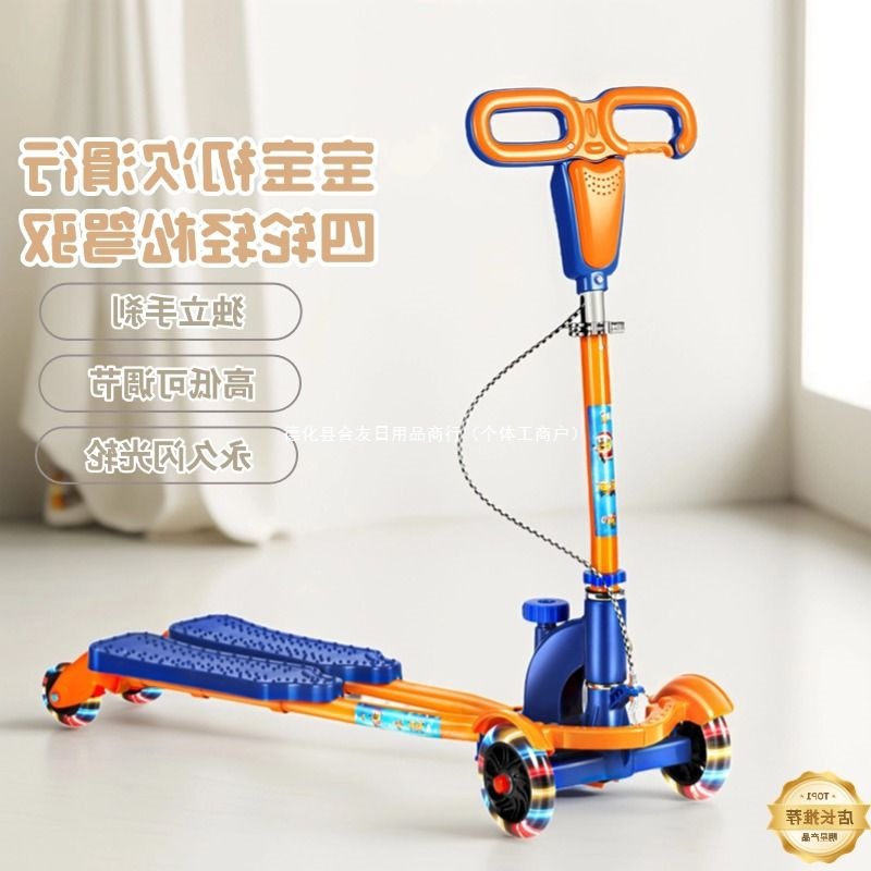 子供用スクーター ダブルペダル - カエル型シザーカー 男の子と女の子用 足を広げてフラッシュ四輪車