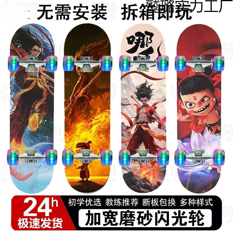 Nezha スケートボード ユース 子供用スケートボード 初心者 エントリーレベル フラッシュ ボーイズ ガールズ プロフェッショナル ダブルカーブ 4輪スケートボード