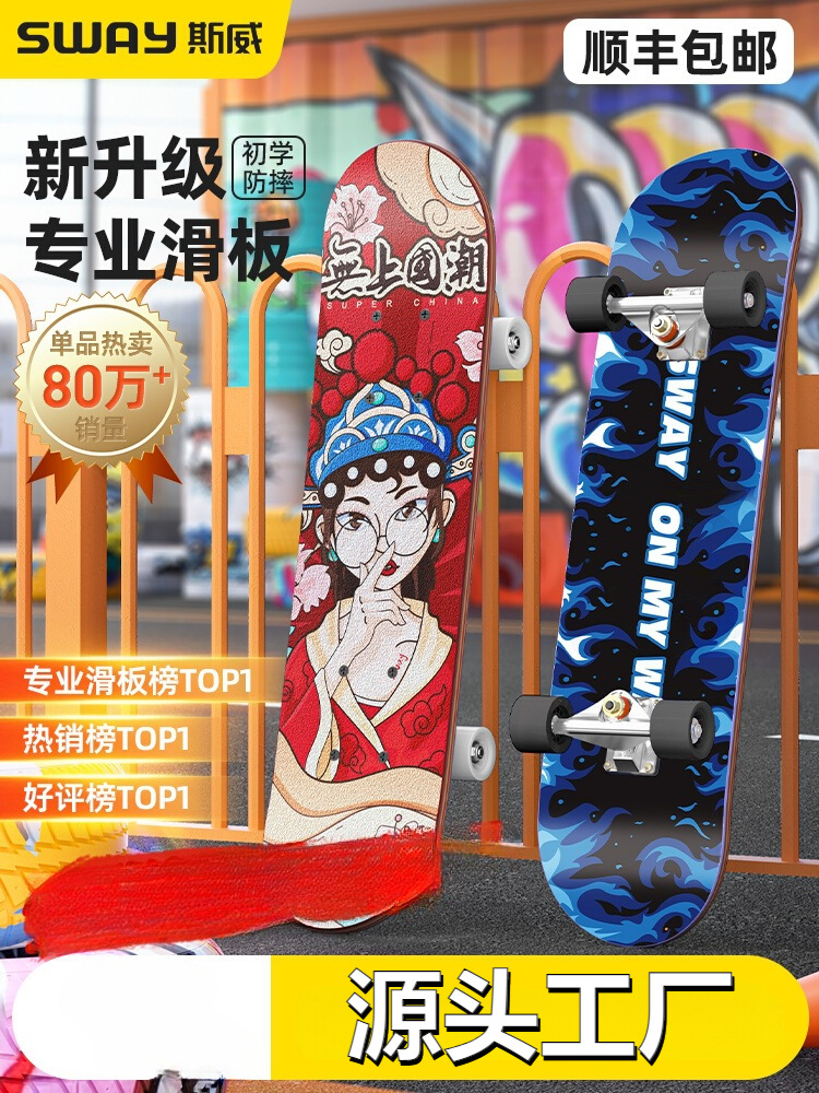 特歩専門スケートボード初心者男子学生成人板青少年大学生四輪スケートボード7階楓木