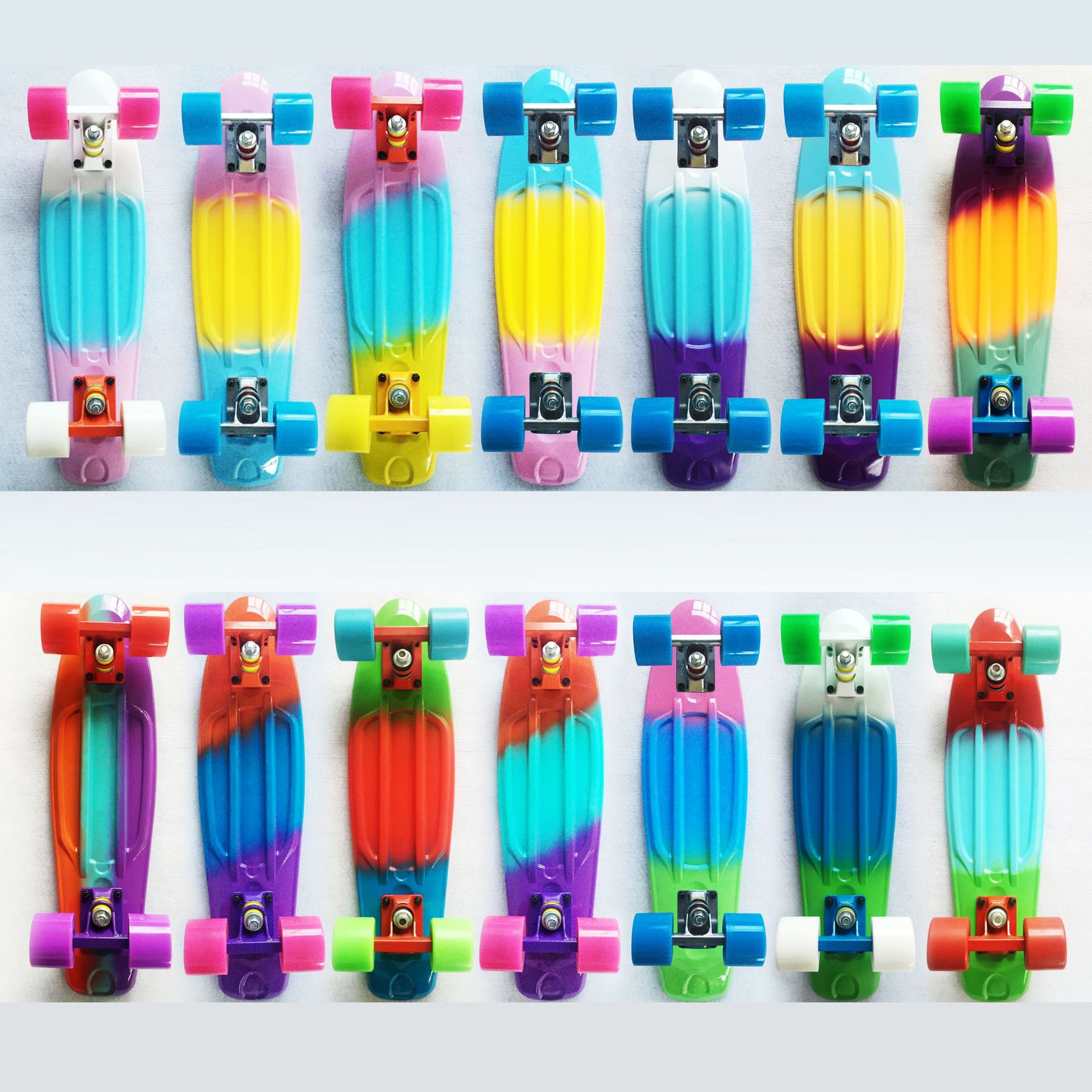 虹配色ppプラスチック小魚板22インチ四輪バナナスケートボードメーカー代発ミニ巡洋艦三色板