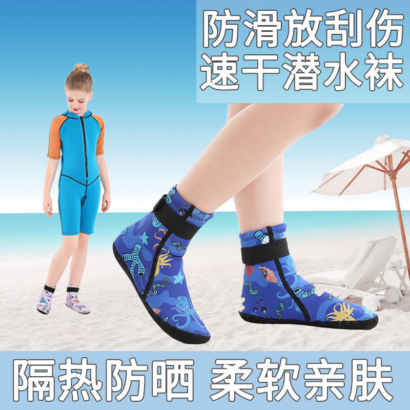 子供用ダイビングソックス、滑り止め、傷防止、海辺の水泳靴、日焼け止め、速乾性、シュノーケリングミッドチューブ、暖かく耐摩耗性のビーチシューズ