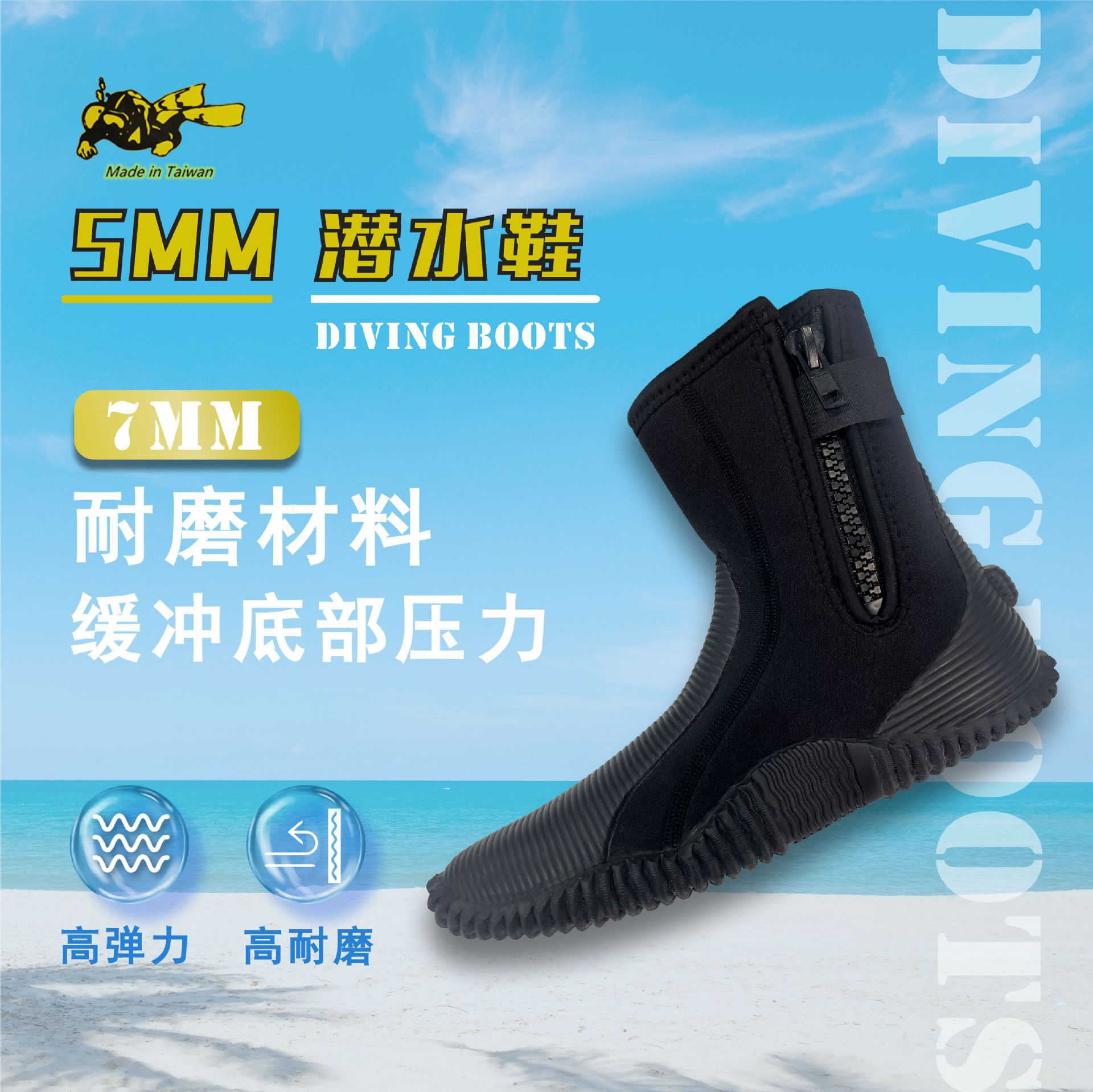 5mmダイビングシューズ、7mm耐摩耗性減圧ソール、アンクルストラップ、ベルクロジッパー、滑り止めバックル