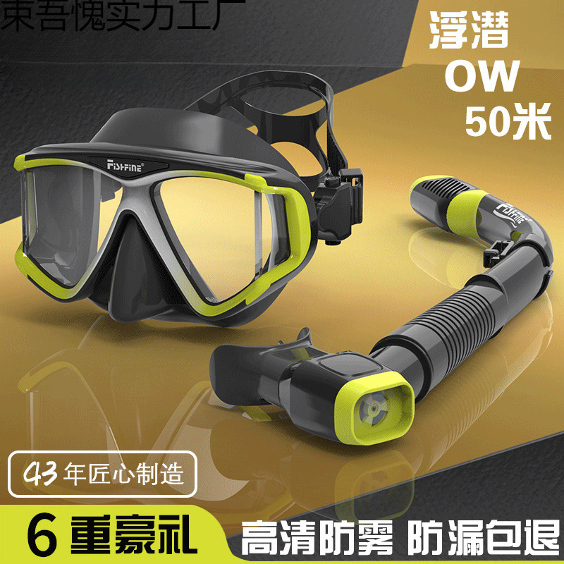 大人用ディープシュノーケリング用品ダイビングゴーグルマスクフルドライシュノーケルセット防水男性と女性のオールインワンラージフレームスイミングゴーグル