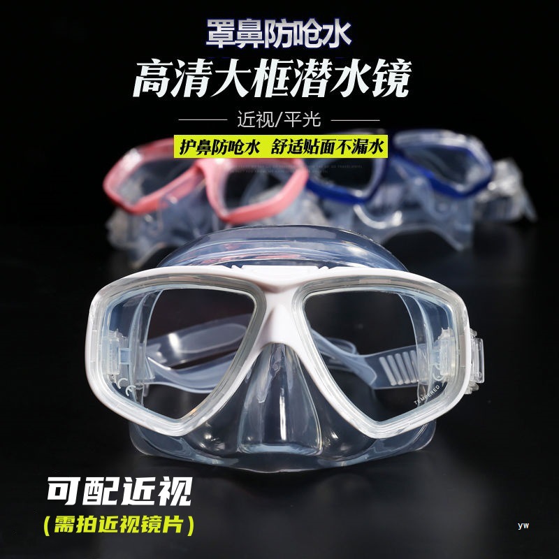 浮潜大枠鏡潜水鏡全乾式面鏡大鼻液体シリカゲルマスク高精細強化ガラスカエル鏡