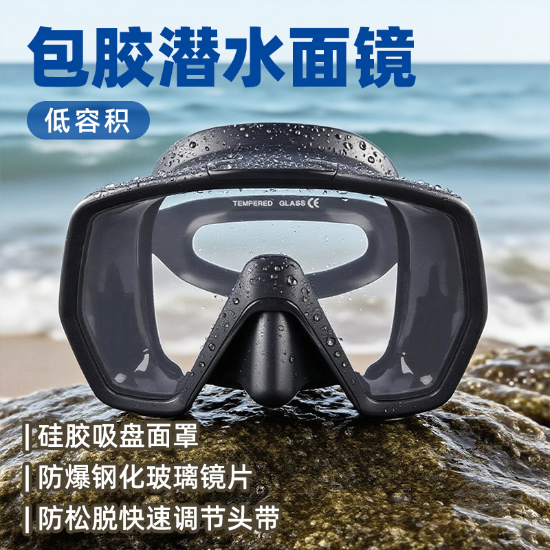 大人用単レンズ大視野包ゴム無枠液体シリカゲル潜水鏡自由潜水肺鏡浮潜マスク