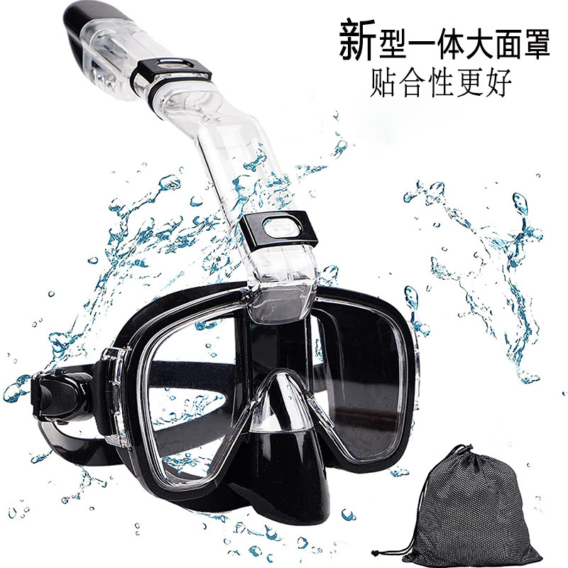潜水鏡防水防霧高清一体型水肺面鏡呼吸管自由潜ガラス深潜マスク