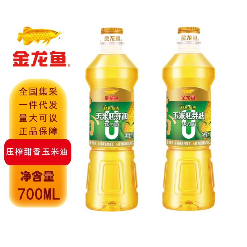 金龍魚新鮮搾り甘香トウモロコシ油700ml瓶入り非遺伝子組換え植物ステロイド圧搾トウモロコシ胚芽油