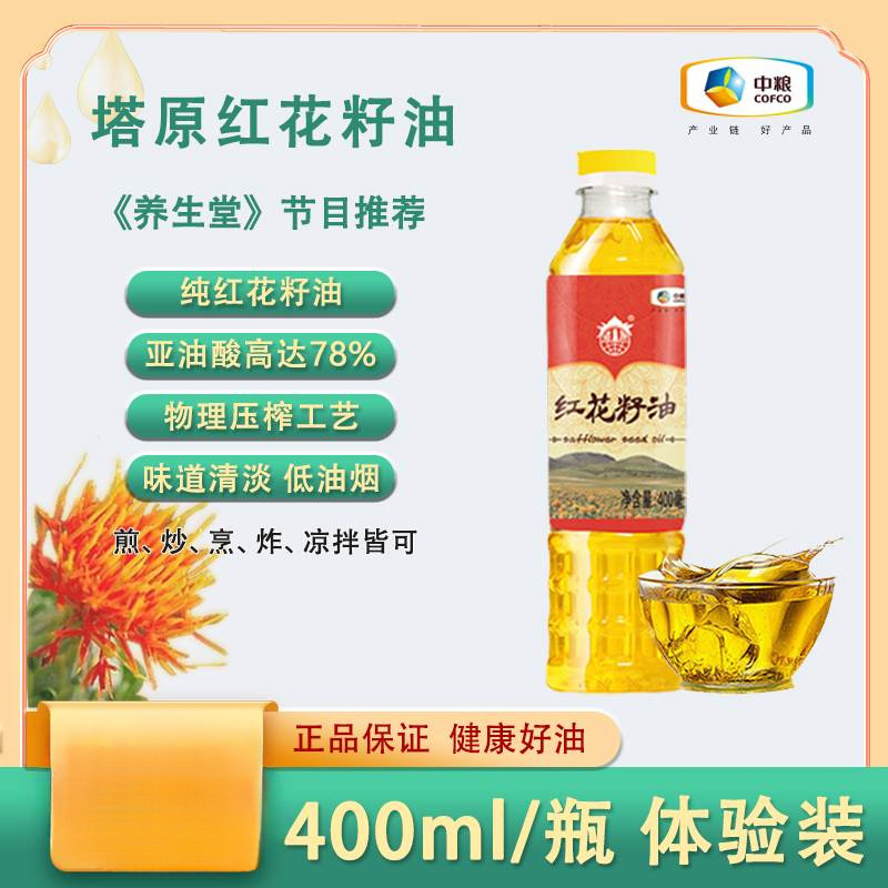 トライアルパック COFCO 新疆純粋な紅花種子油 400ml ボトル