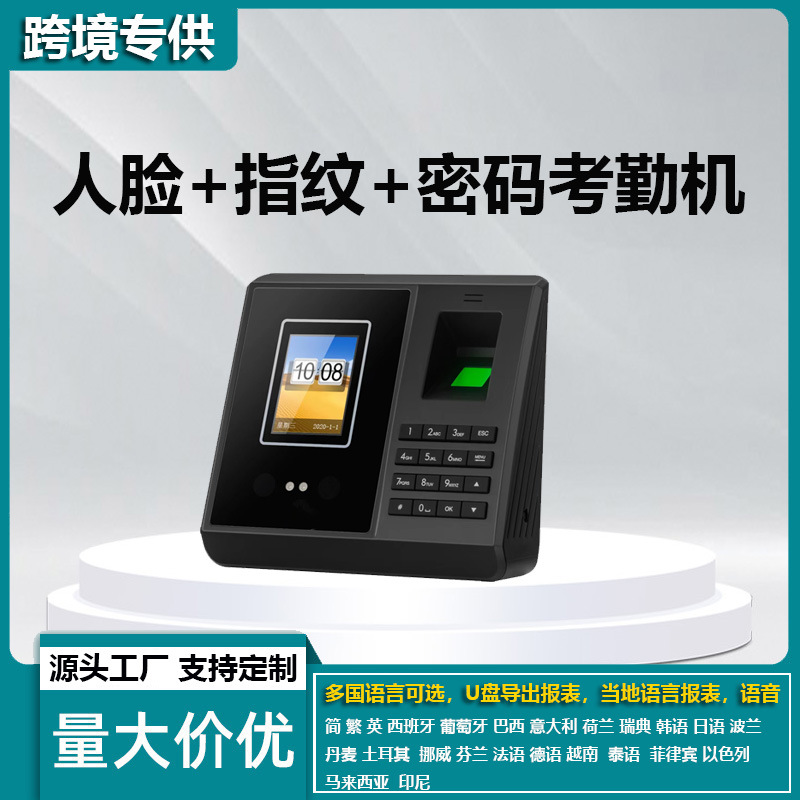 国境を越えた顔認識勤怠管理機指紋顔認識パスワード英語スペイン語従業員勤怠管理機