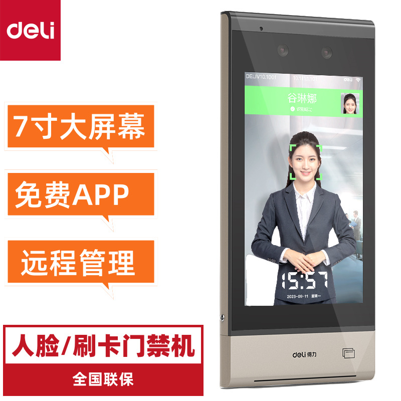 デリエンタープライズ WeChat アクセス制御機勤怠オールインワンマシン 7inch タッチスクリーン顔認識リモートロック解除アクセス制御機