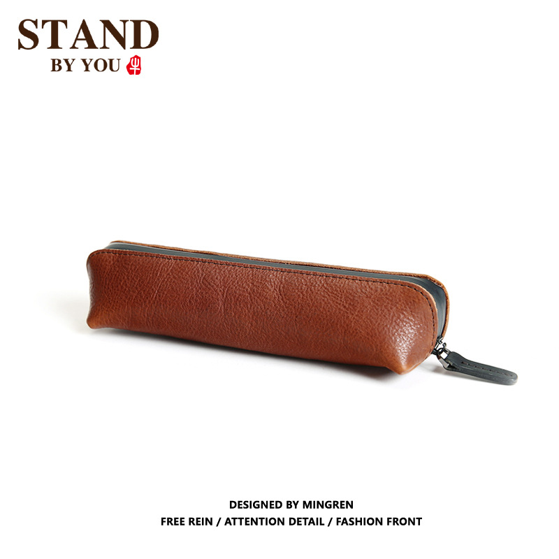 手作りのレトロなトップ層の牛革の筆袋のアイデアはなめし革の文房具袋の本革の収納袋のペンケースの純色の小銭入れを植えます。