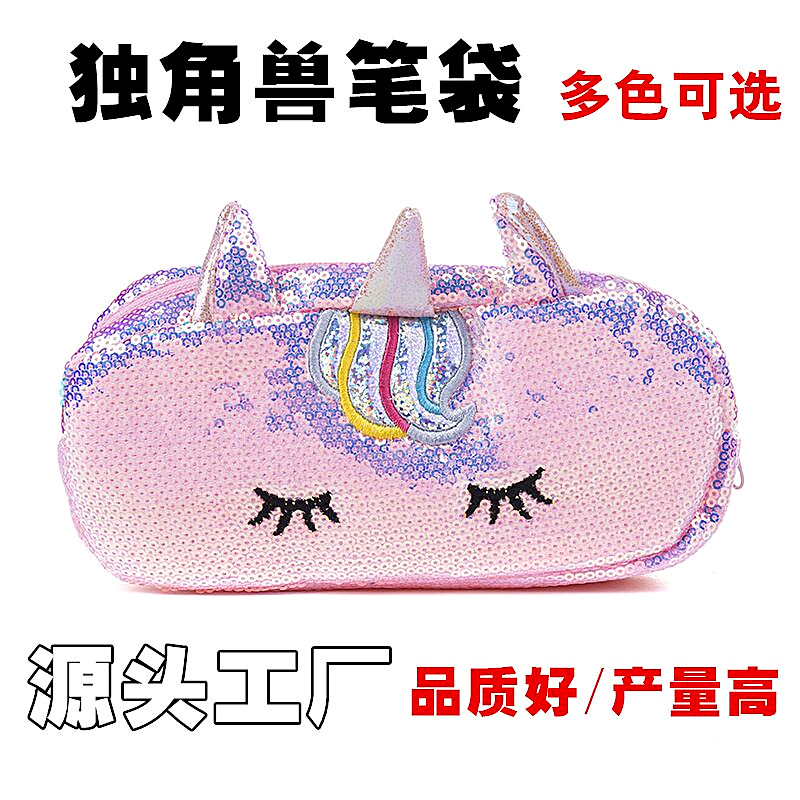 クリエイティブなペンケース、ユニコーンスパンコールレーザー、かわいい漫画の小銭入れ、ペンケース、ジッパー付きクラッチバッグの越境専用供給