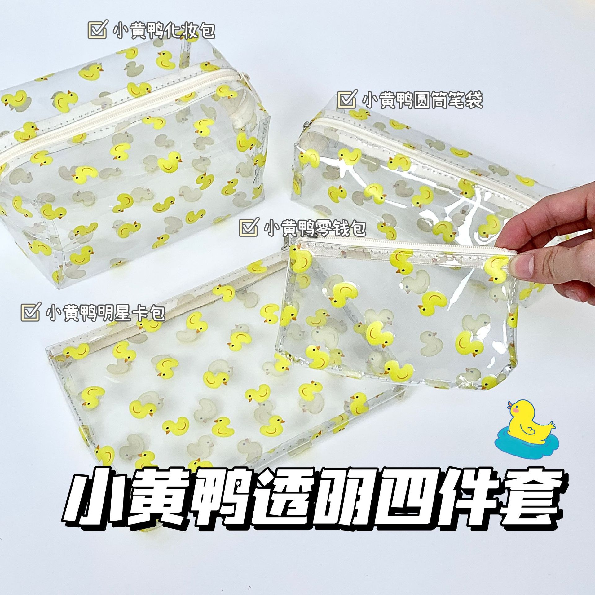 かわいい小黄鴨透明収納袋insシンプル高颜値化粧バッグ学生文房具収納袋小銭入れ