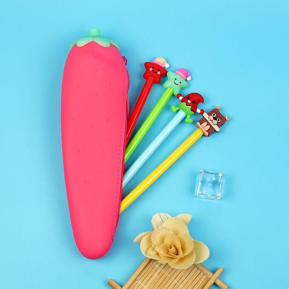 メーカー学生用ペンケースシリコン小銭入れ果物野菜ニンジン唐辛子エンドウ豆ペンケース