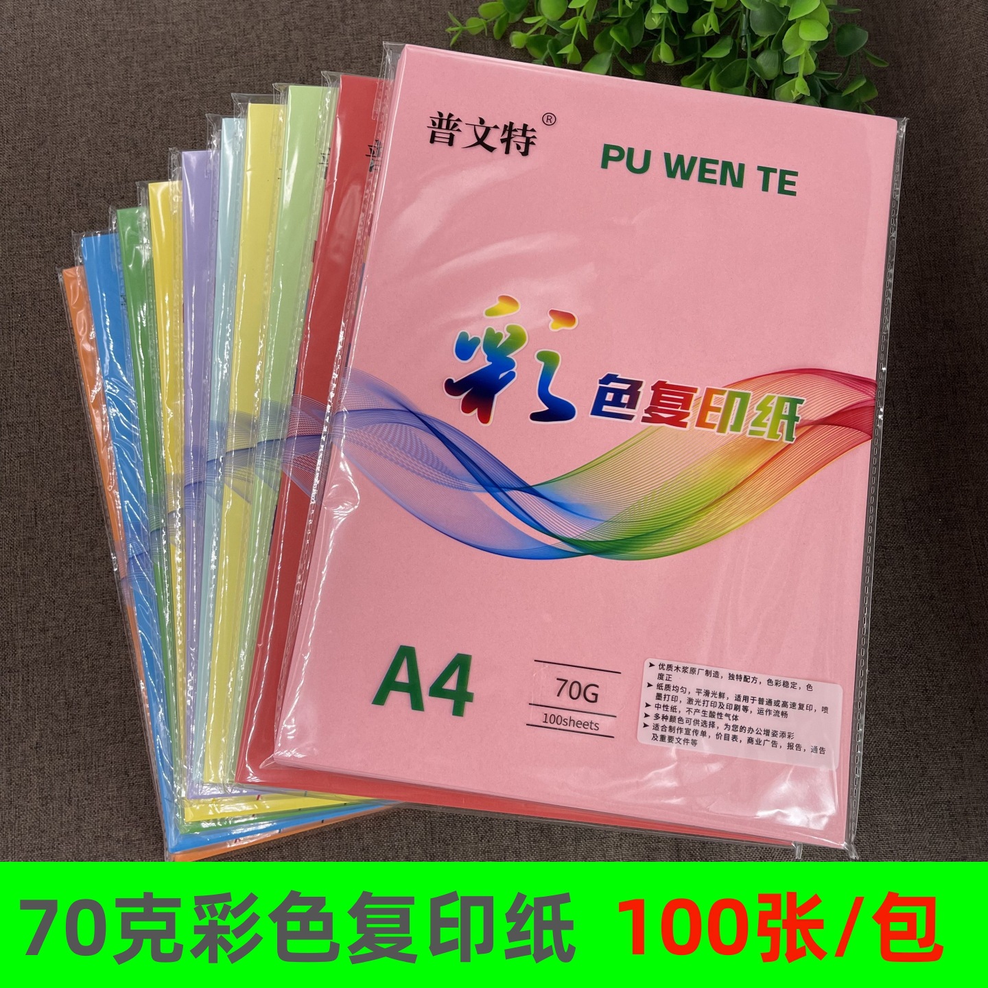 カラー印刷コピー用紙100枚a 4紙70グラムgピンク混色緑青黄紫大紅桃色紙卸売り