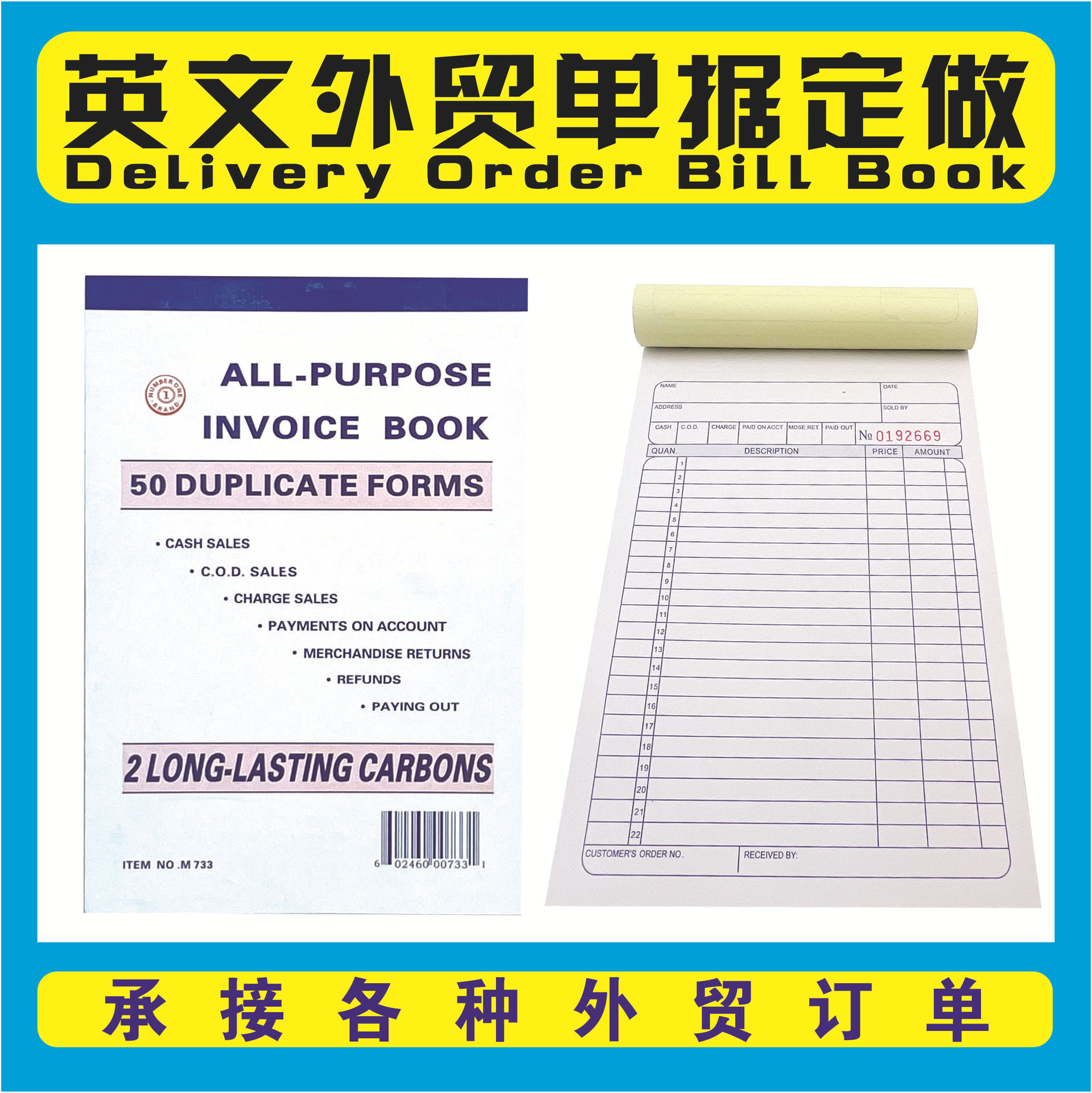 インボイスブック 英語配送伝票 外国貿易用複写注文書 レシートリスト カスタム 外国貿易専用