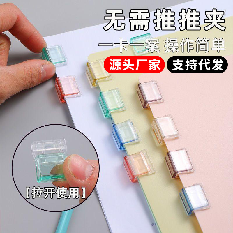 テスト用紙クリエイティブプッシュクリップ透明カラープッシュプルクリップ学生テスト用紙情報オフィスファイルストレージ固定クリップ
