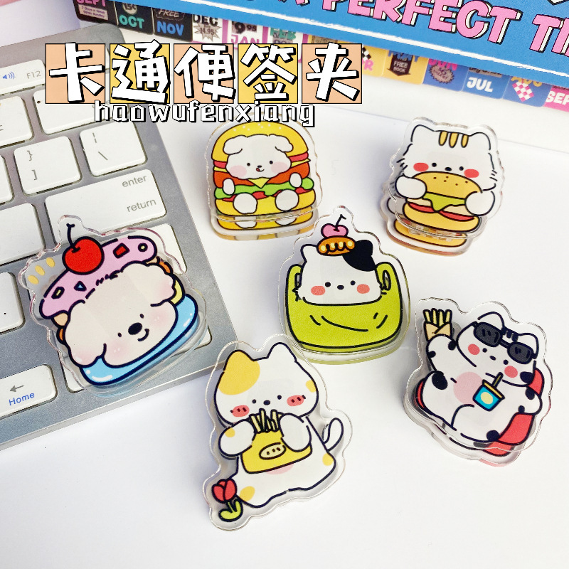 卸売アクリル両面 pp クリップインパチャ犬面白い食品漫画かわいいテスト用紙ノートクリップ