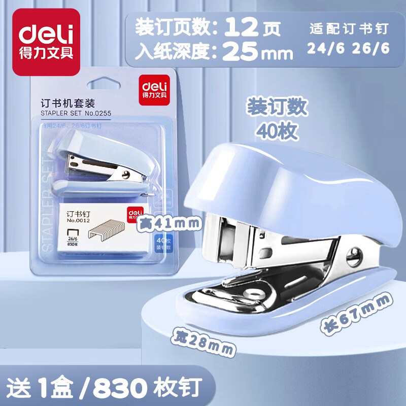 有力0255ホッチキスセットトランペット漫画学生用ポータブルホッチキスミニスカイブルー