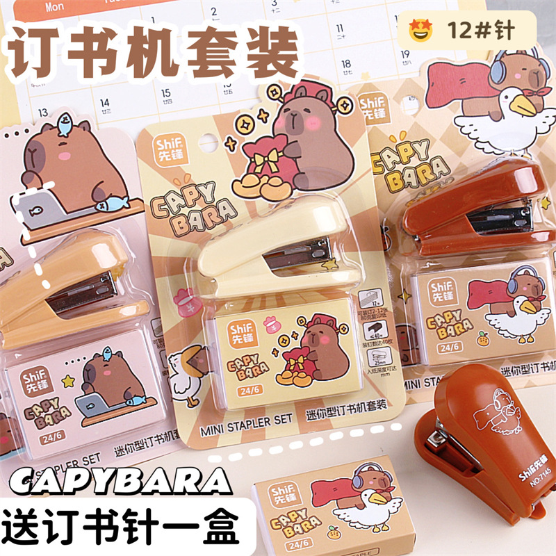 カピバラ公仔ホッチキスセット学生用ミニトランペットホッチキスオフィス製本機文