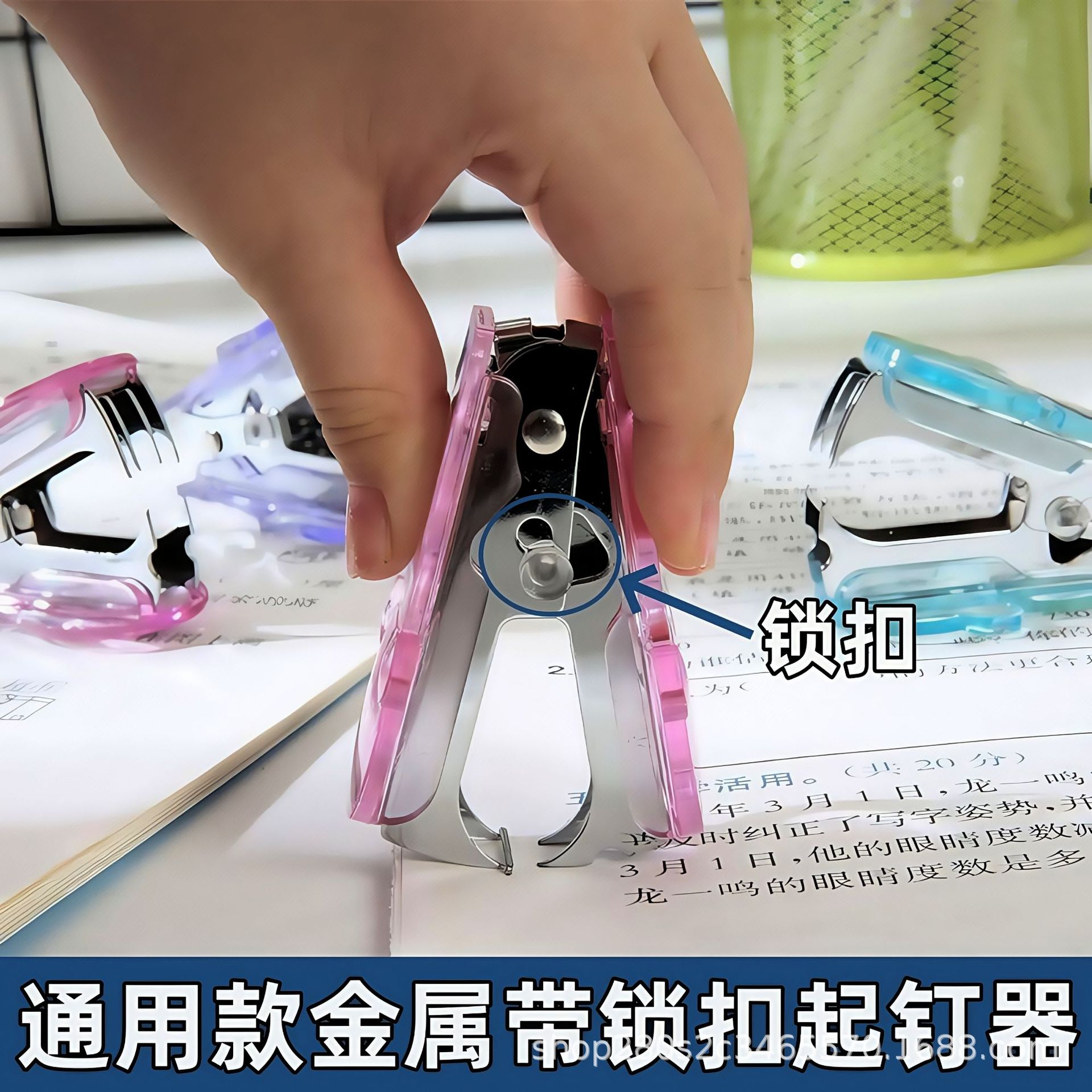 クリエイティブ文房具針なしホッチキスミニ釘なしホッチキス実色事務学習用品卸売りロゴ