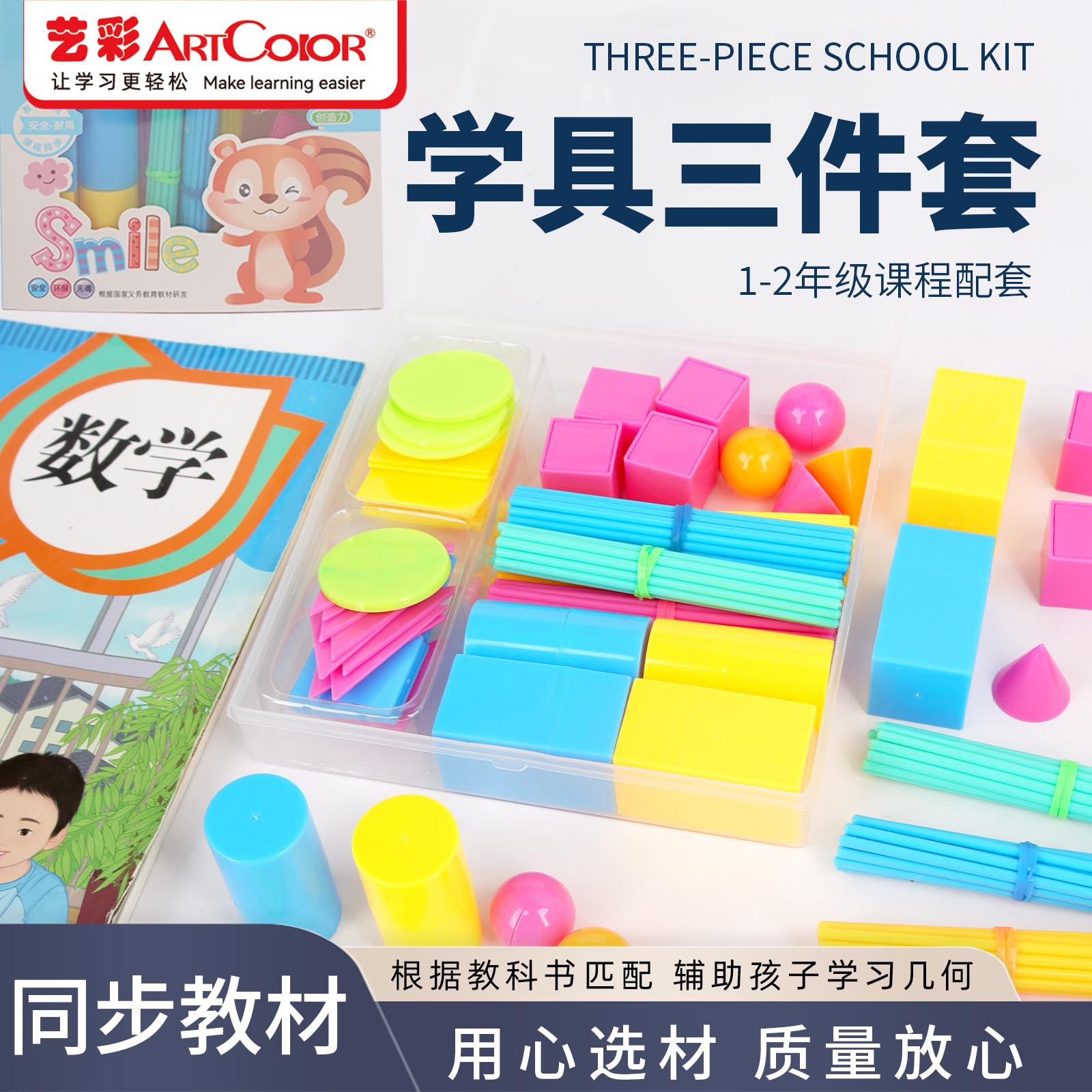 芸彩学具三点セット幾何学片計数棒組み合わせ学生文房具数学教育具一二年生