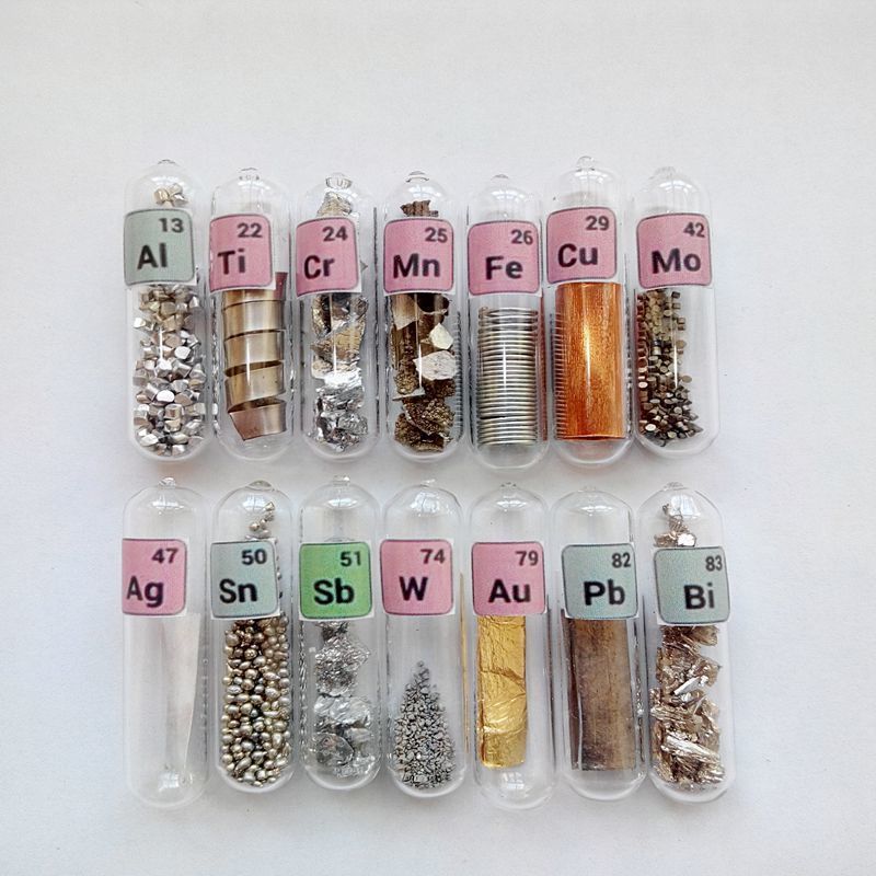 物理単一ガラス密封金箔銀シート 14 組み合わせコレクション教育ディスプレイ装飾品ギフト化学元素