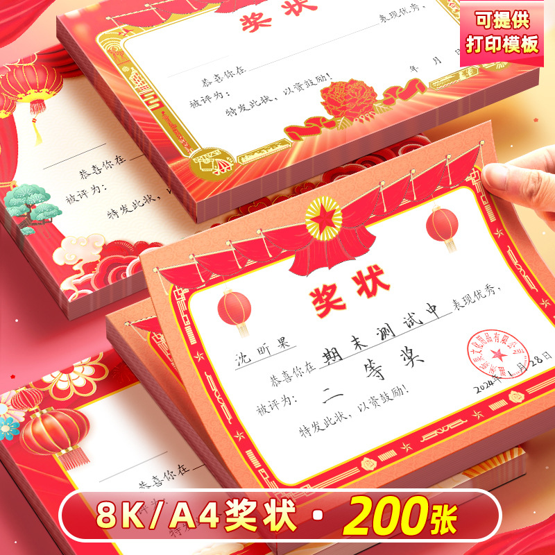 A4小学生の赤い賞状8k/16k通用優秀な三好学生の賞状紙の空白を厚くして印刷して作ることができる