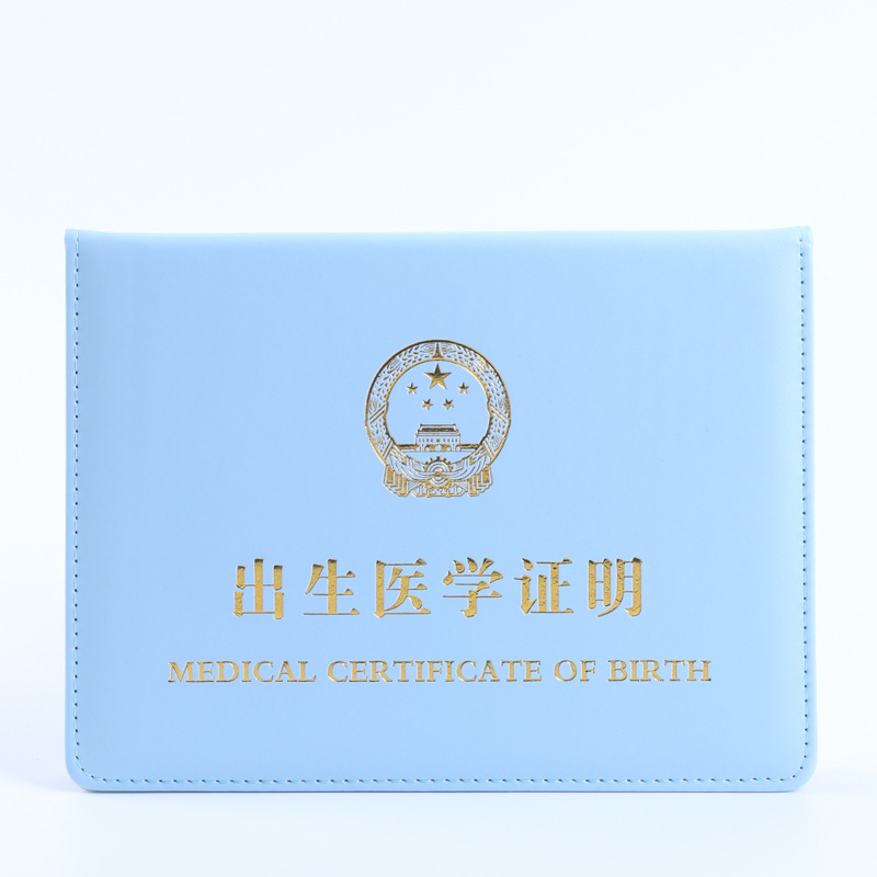 浅い青の出生証明のメーカーは第5版の厚いタイプの出生証明の皮カバーの出生証明の保護カバーの卸売りを供給します。