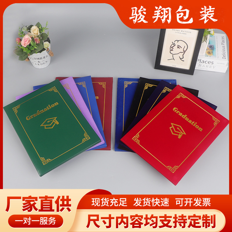 A4サイズの横型卒業証書カバー、箔押し、シルク加工、パール光沢仕上げの名誉証書を袋詰めして卸売りしています。