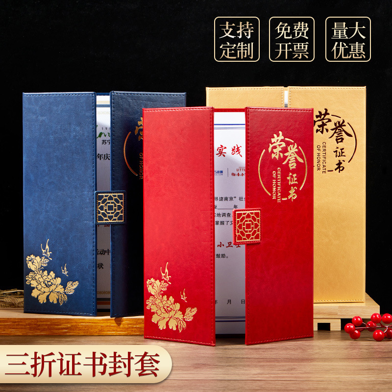 有力24819栄誉証明書三つ折りページ高級箔押し技術二重使用付属内ページ賞状証明書