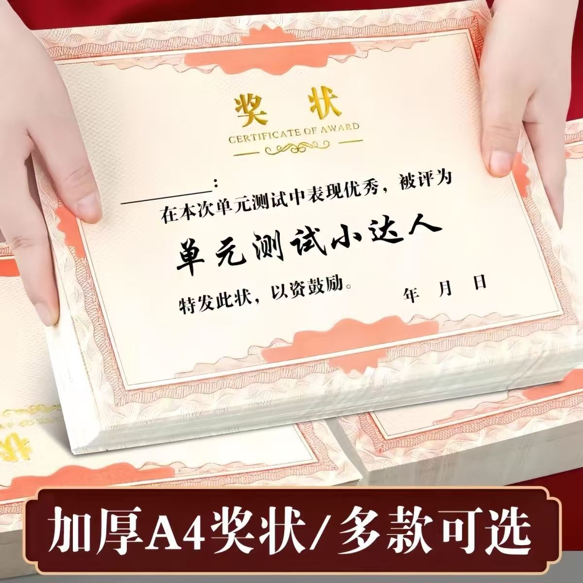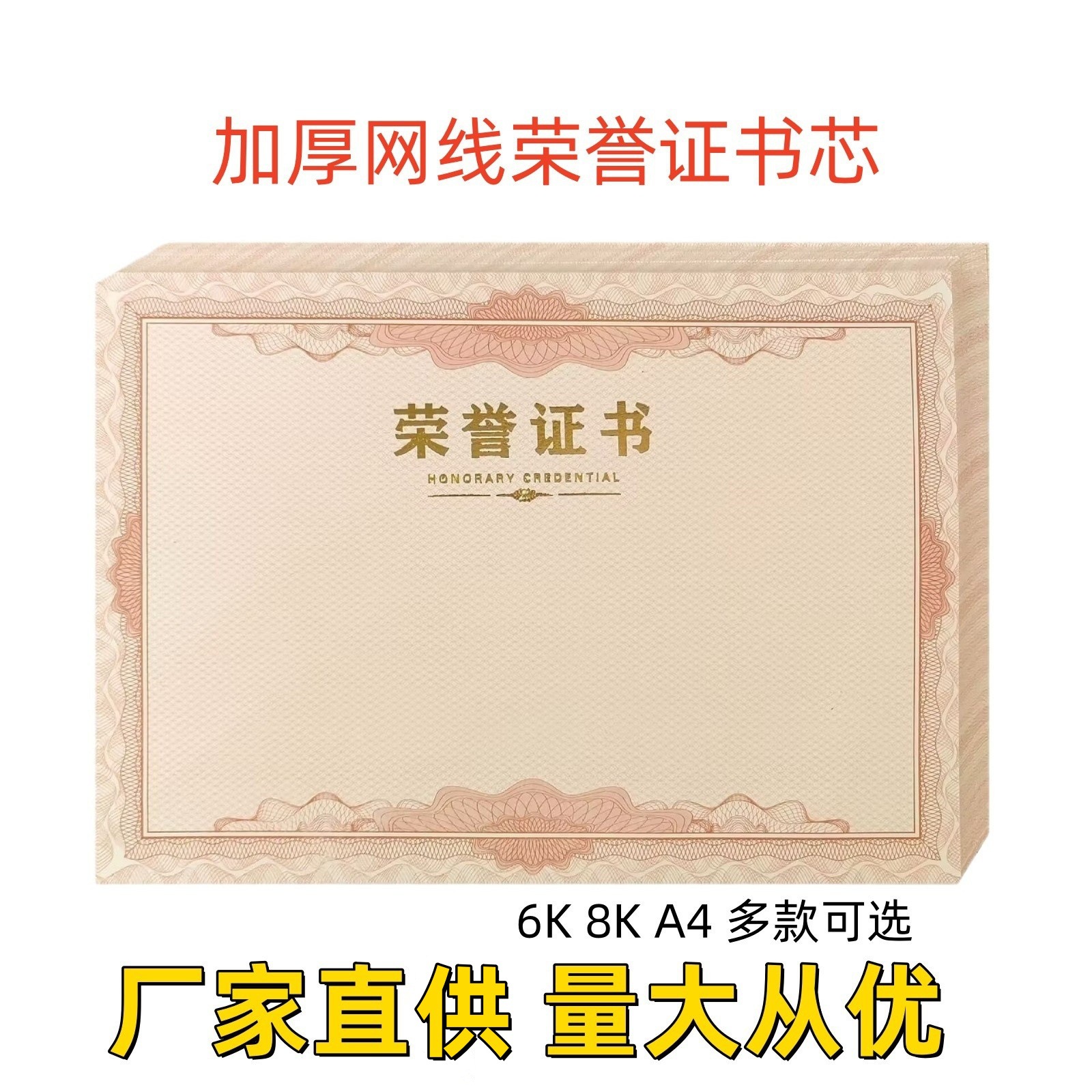 厚みのあるホットスタンピング A4 名誉賞状用紙ピンク証明書小中学生 8K ベージュ空白インナーコアページカスタム印刷