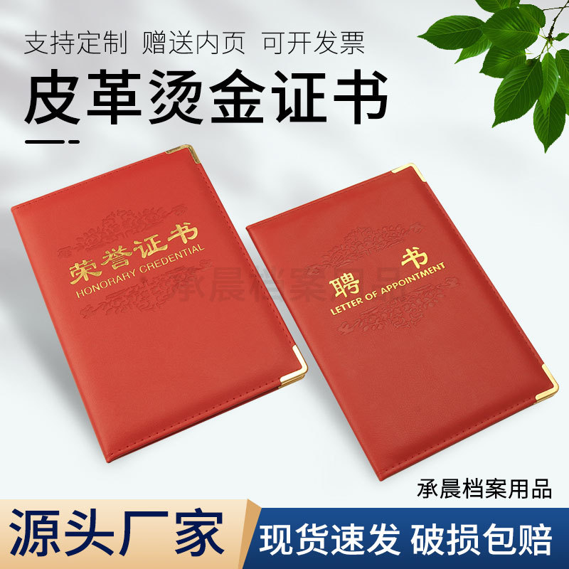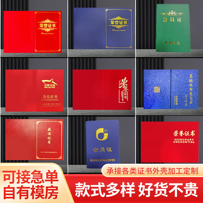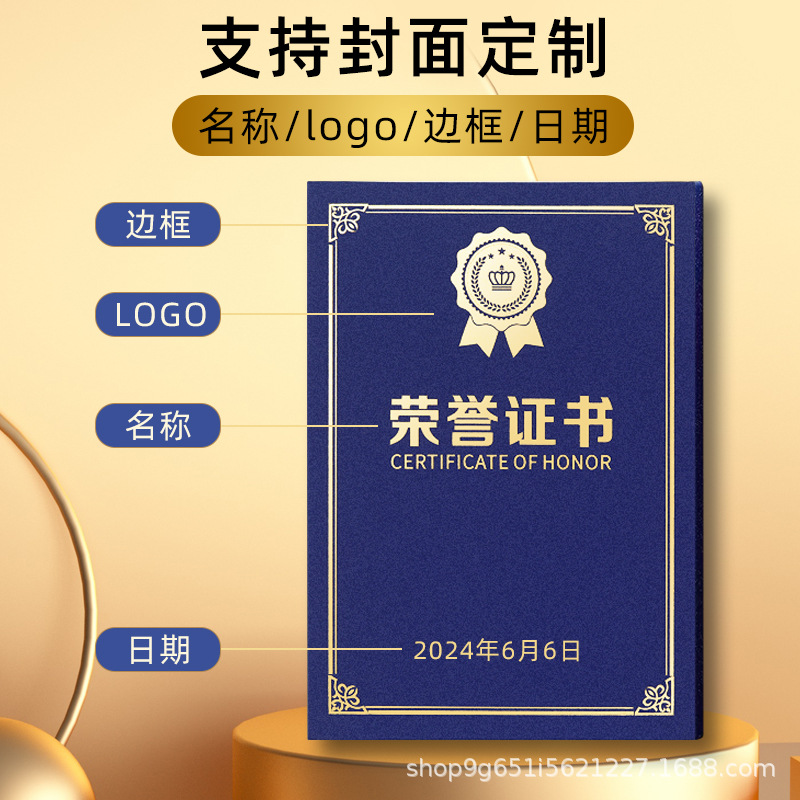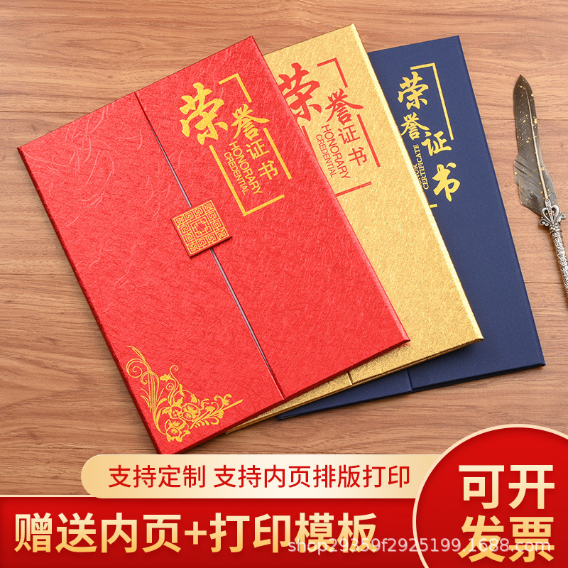 モノリシック開帳証明書A4珠光フロスト栄誉証明書表紙皮証明書製作カバー修了栄誉証明書