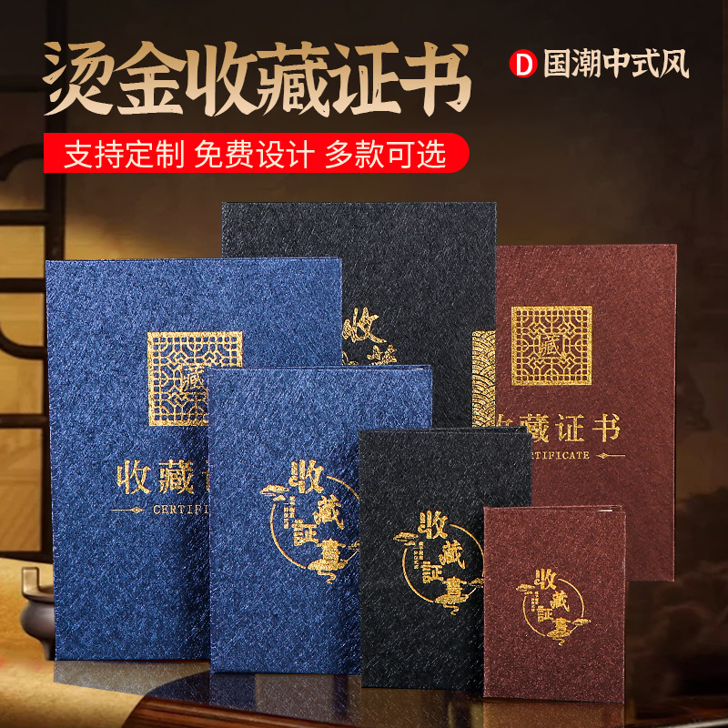 高級コレクション証明書箔押し表紙ロゴ糸中国風作品コレクションシェル証明書印刷